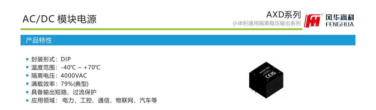 產品特性封裝形式:DIP溫度范圍:-40℃℃~+70。隔離電壓:4000VAC滿載效率:79%(典型)具備輸出短路、過流保護.應用領域: 電力、工控、通信、物聯網、汽車等