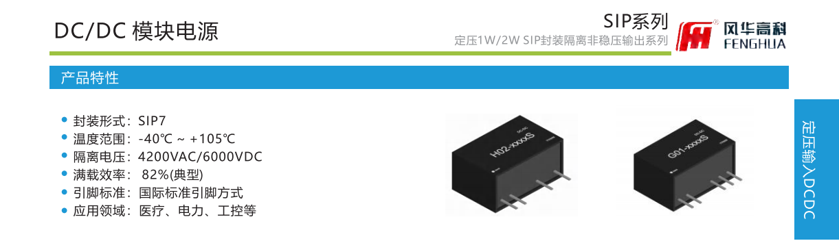 產品特性:封裝形式:SIP7溫度范圍:-40℃~+105℃隔離電壓:4200VAC/6000VDC滿載效率::82%(典型)引腳標準:國際標準引腳方式應用領域:醫療、電力、工控等