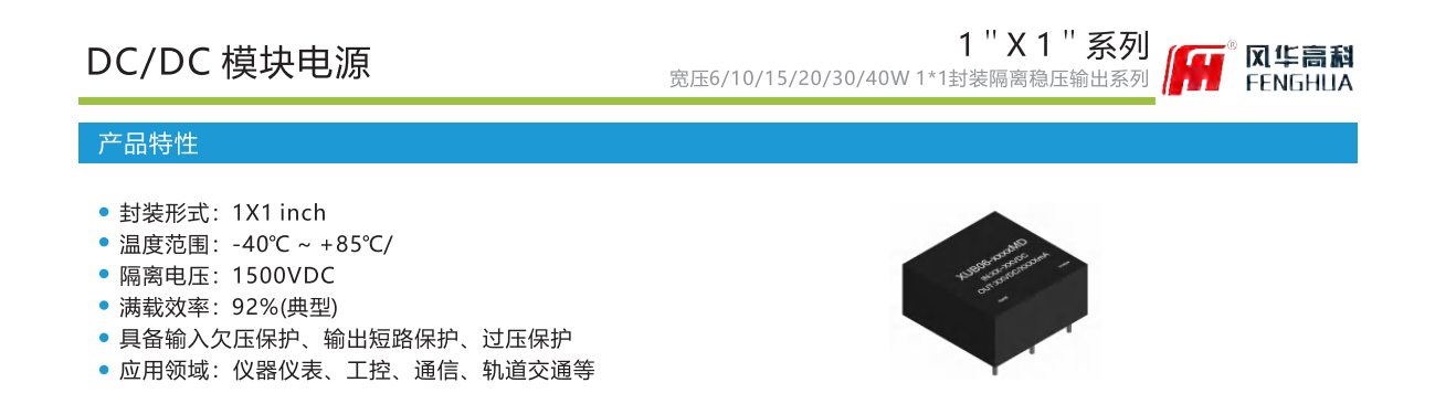 產品特性:封裝形式:1X1inch溫度范圍:-40℃℃~+85°C/.隔離電壓:1500VDC.滿載效率:92%(典型).具備輸入欠壓保護、輸出短路保護、過壓保護應用領域:儀器儀表、工控、通信、軌道交通等