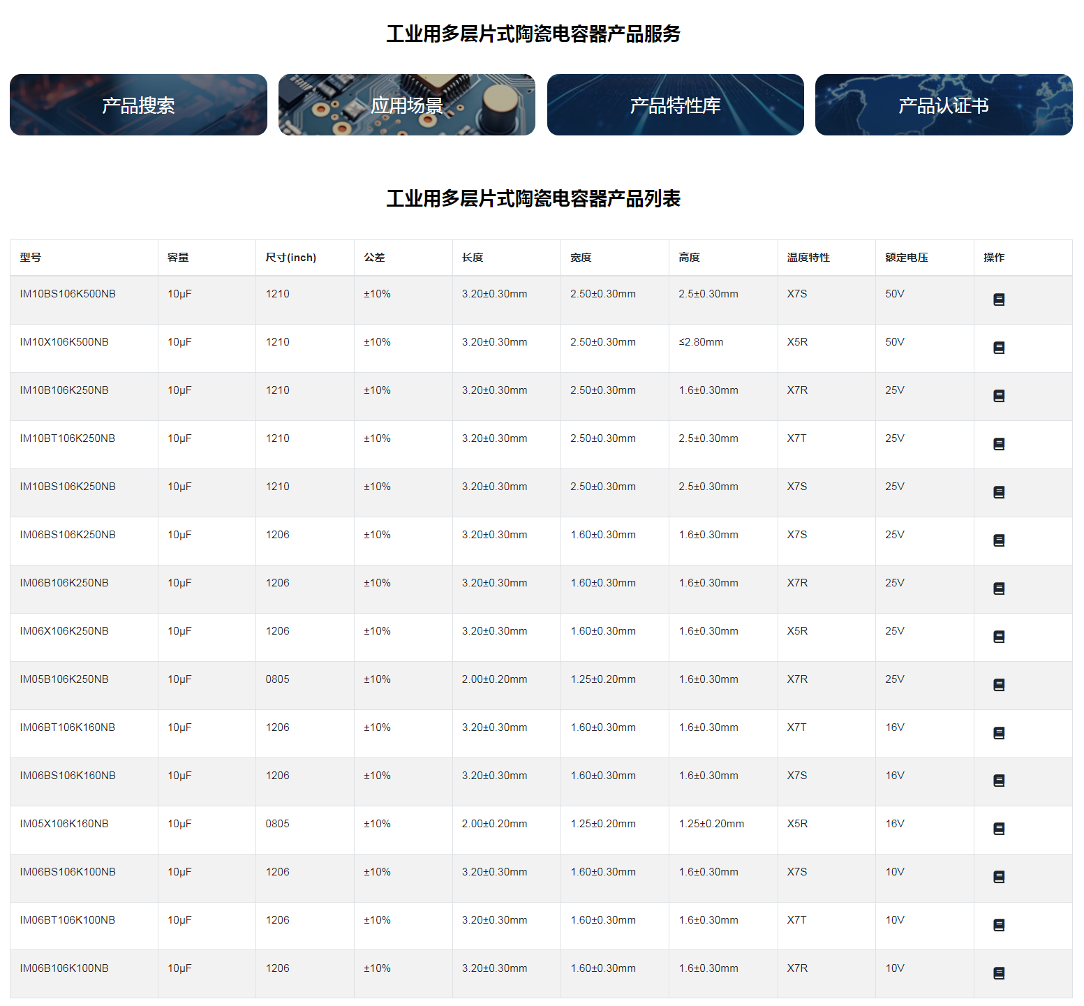 ■工業(yè)用多層片式陶瓷電容器◆特征* 產(chǎn)品專門設(shè)計應用于工業(yè)級電子自動化設(shè)備、網(wǎng)絡核心設(shè)備及其相關(guān)電子產(chǎn)品* 產(chǎn)品具有高可靠性,適用于應用條件苛刻、質(zhì)量要求高、低失效率的各類電子產(chǎn)品* 執(zhí)行標準:GB/T 21041-2007 GB/T 21042-2007