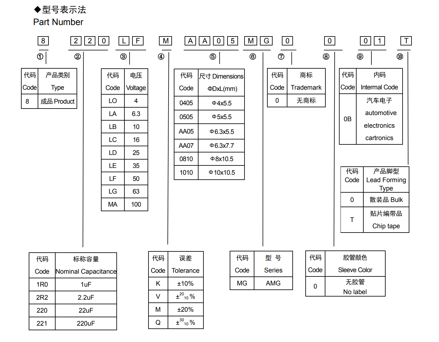 ■AMG車規系列長壽命貼片型電解電容器◆ 特征* 壽命: 100℃ 8000 小時* 符合 RoHS* 符合 AEC-Q200◆應用* 適用于汽車模塊電子產品和耐高溫環境應用環境產品* 適用于自動表面貼裝技術和高密度電路