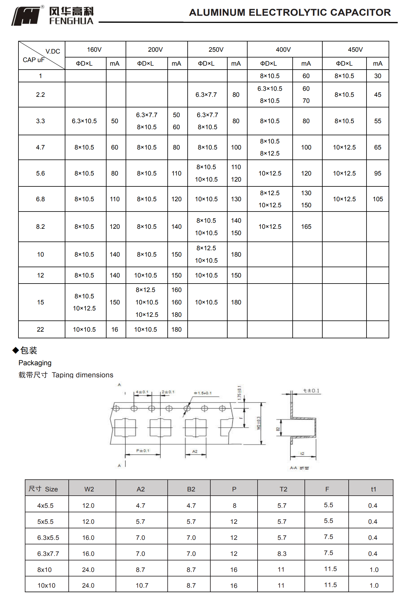 ■MF系列標準貼片型電解電容器◆特征* 壽命: 105℃ 2000~5000 小時* 符合 RoHS◆應用:* 適用于開關電源 、通信設備及其它各種電子產品* 適用于自動表面貼裝技術和高密度電路