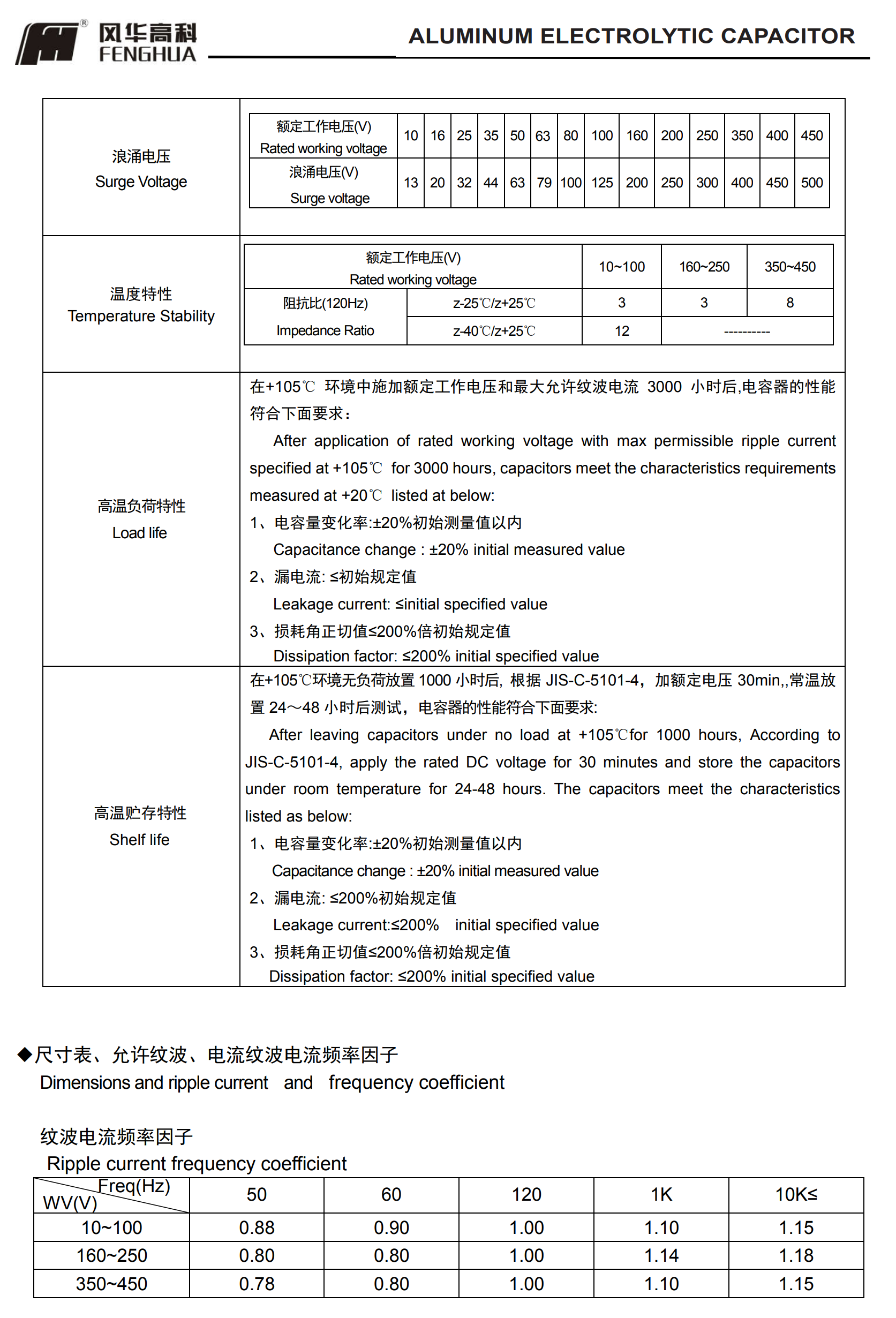 * 壽命: 105℃ 3000 小時