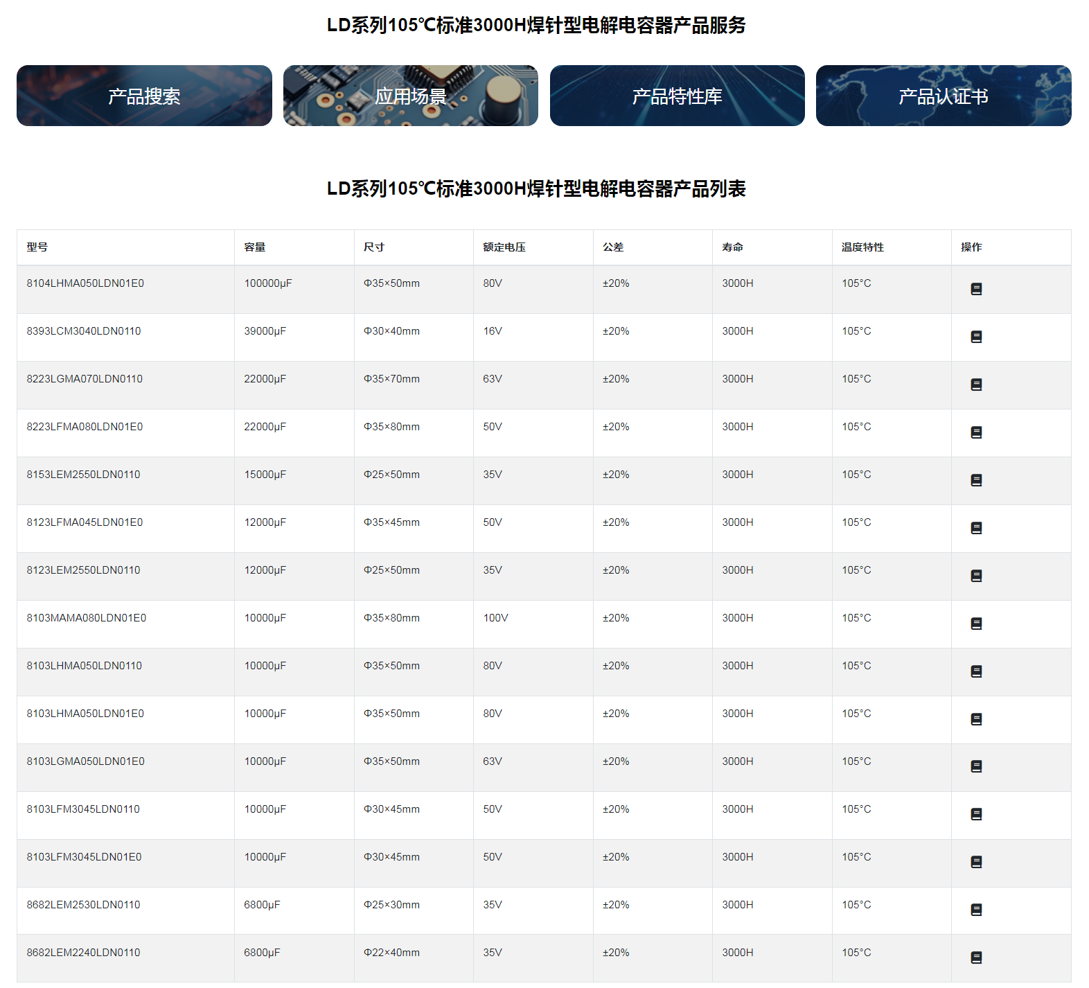 ■LD系列105℃標準3000H焊針型電解電容器