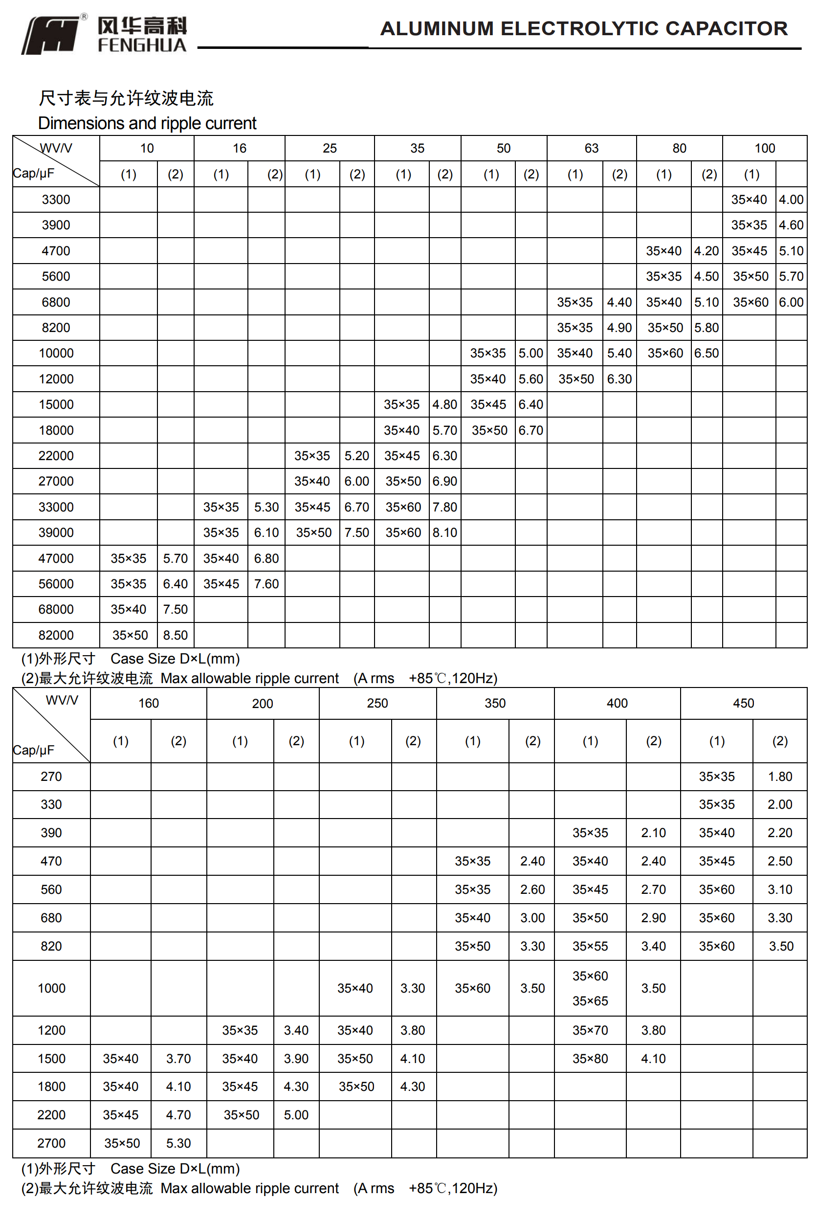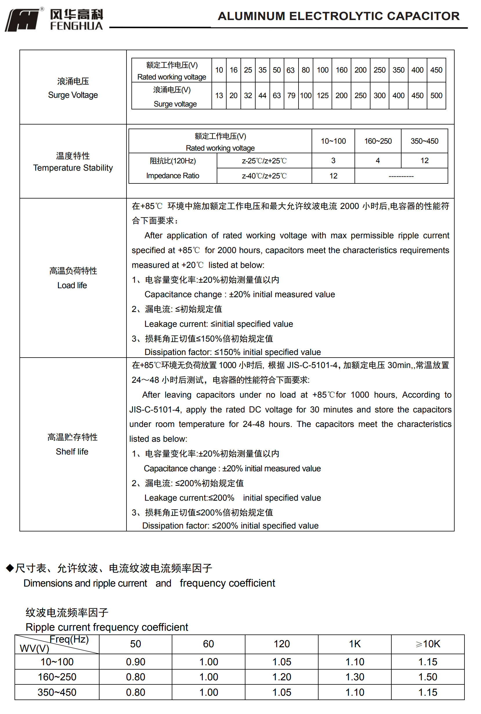 * 壽命: 85℃ 2000小時;