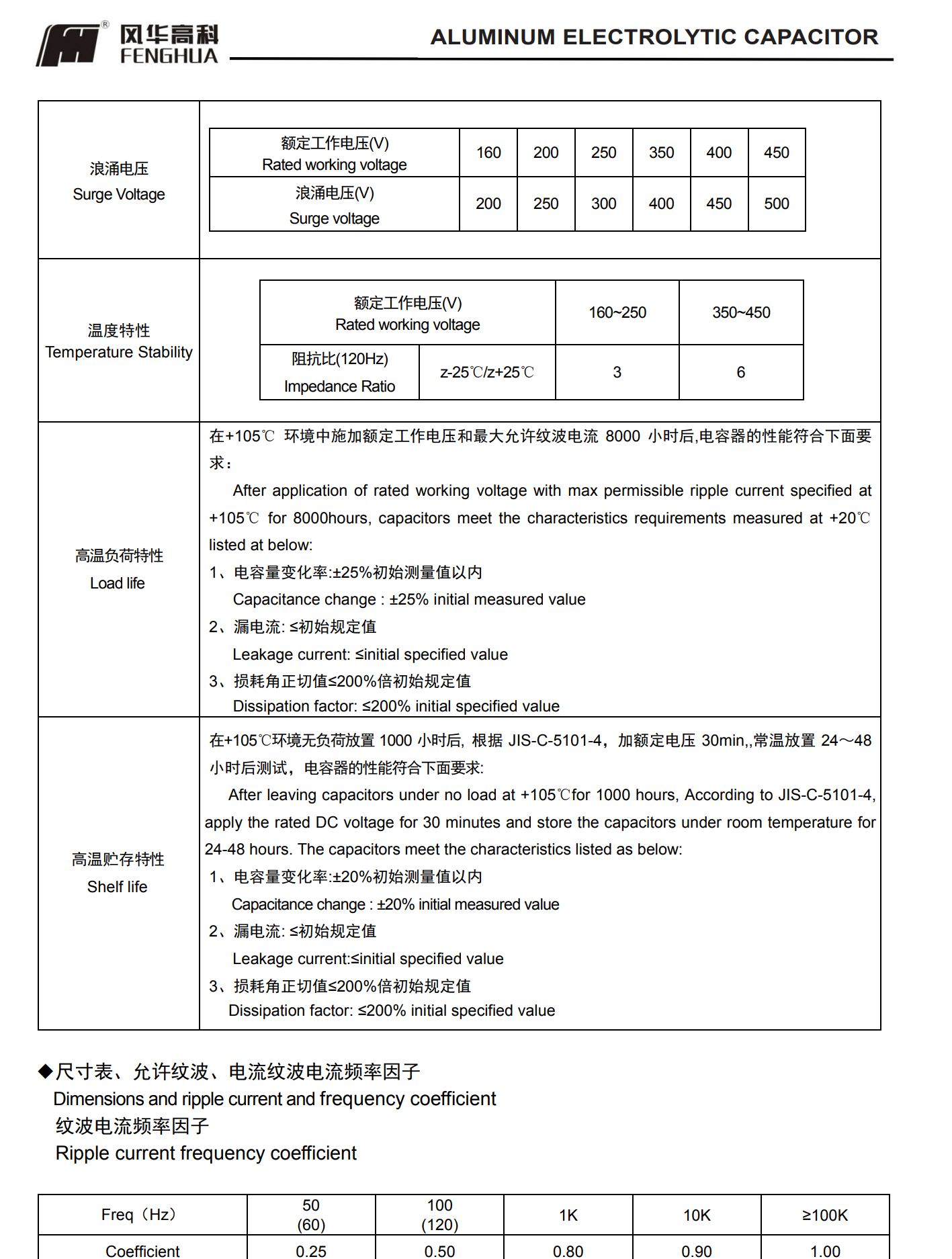 * 壽命: 105℃ 8000 小時