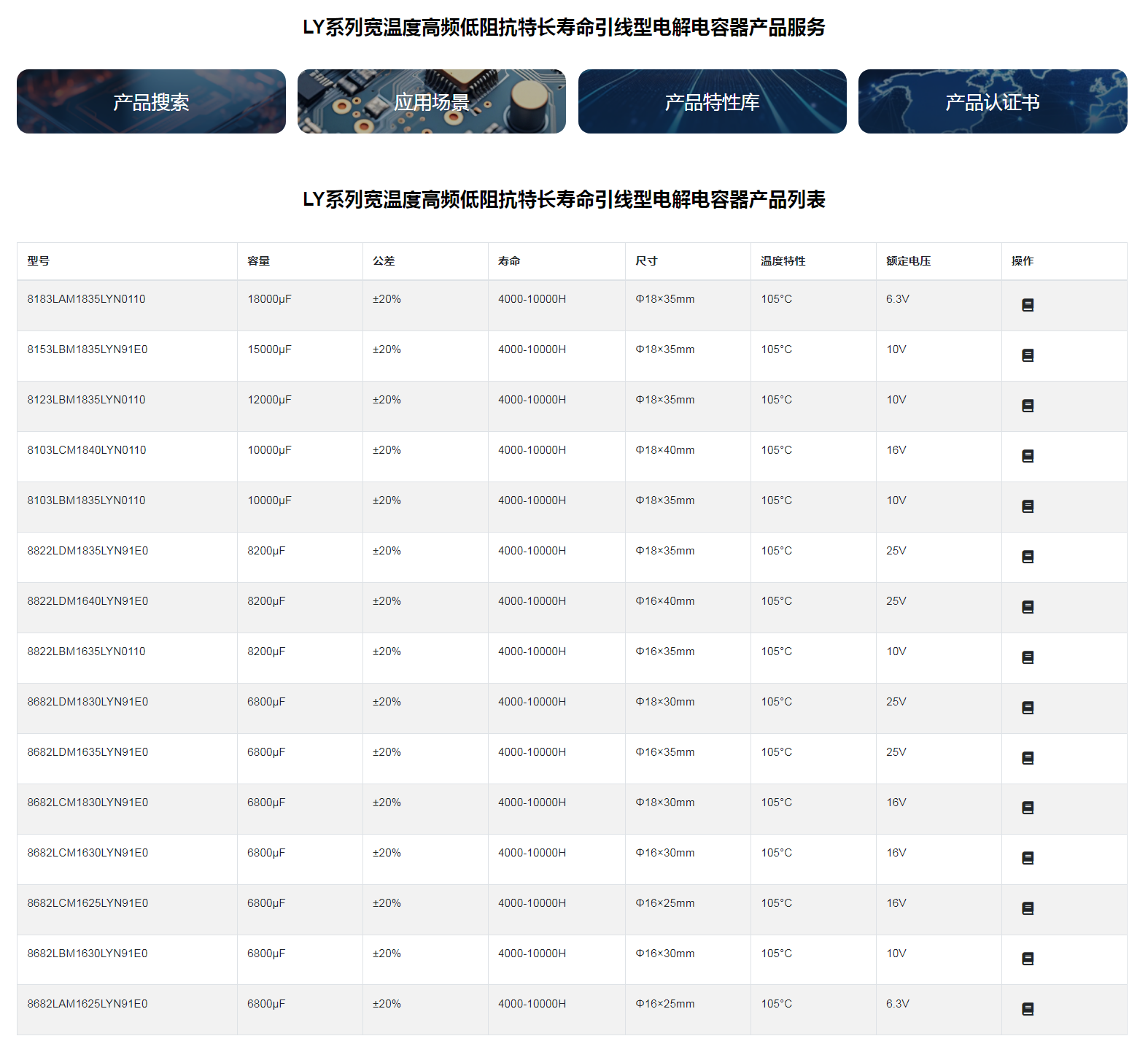 ■LY系列寬溫度高頻低阻抗特長壽命引線型電解電容器