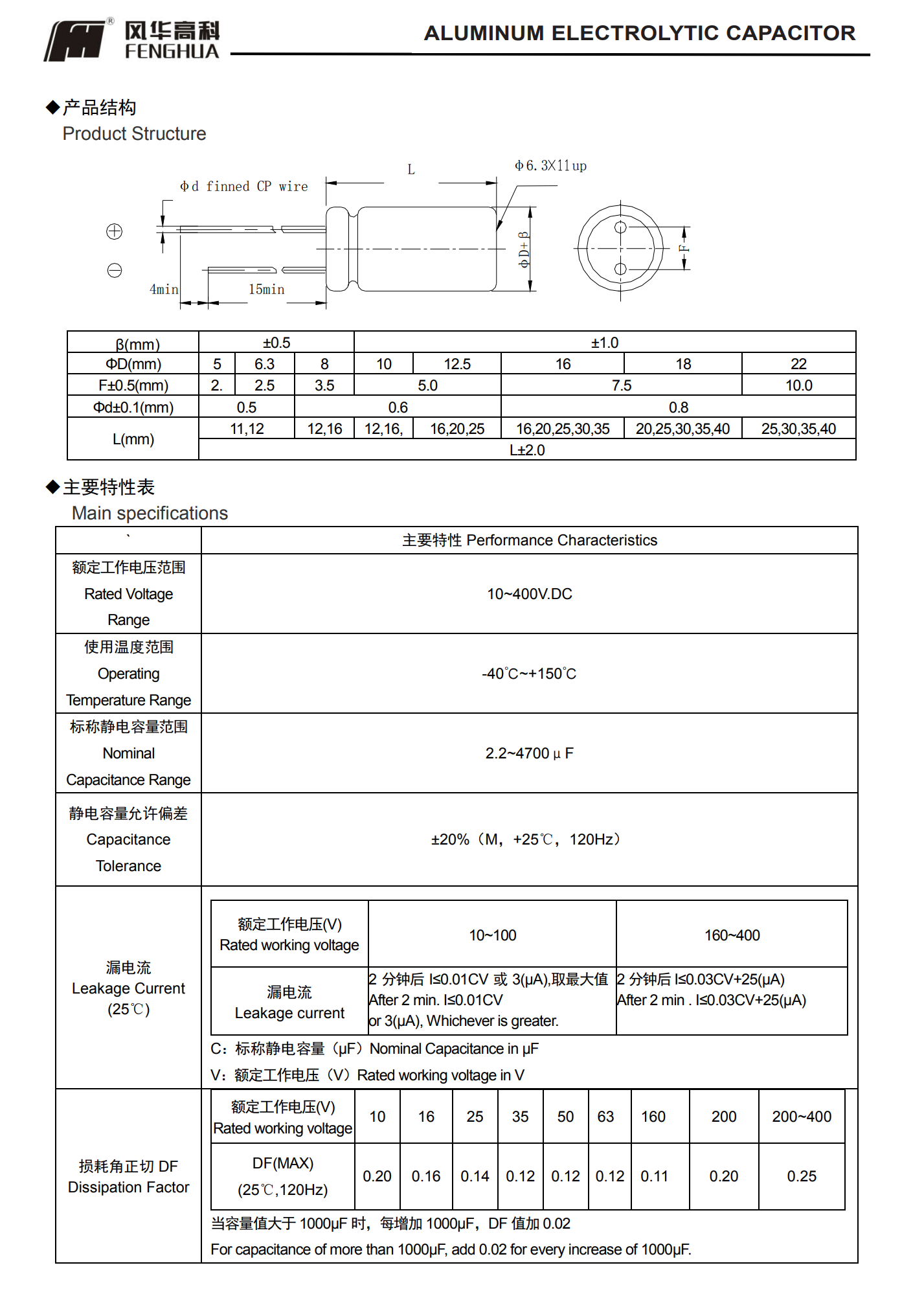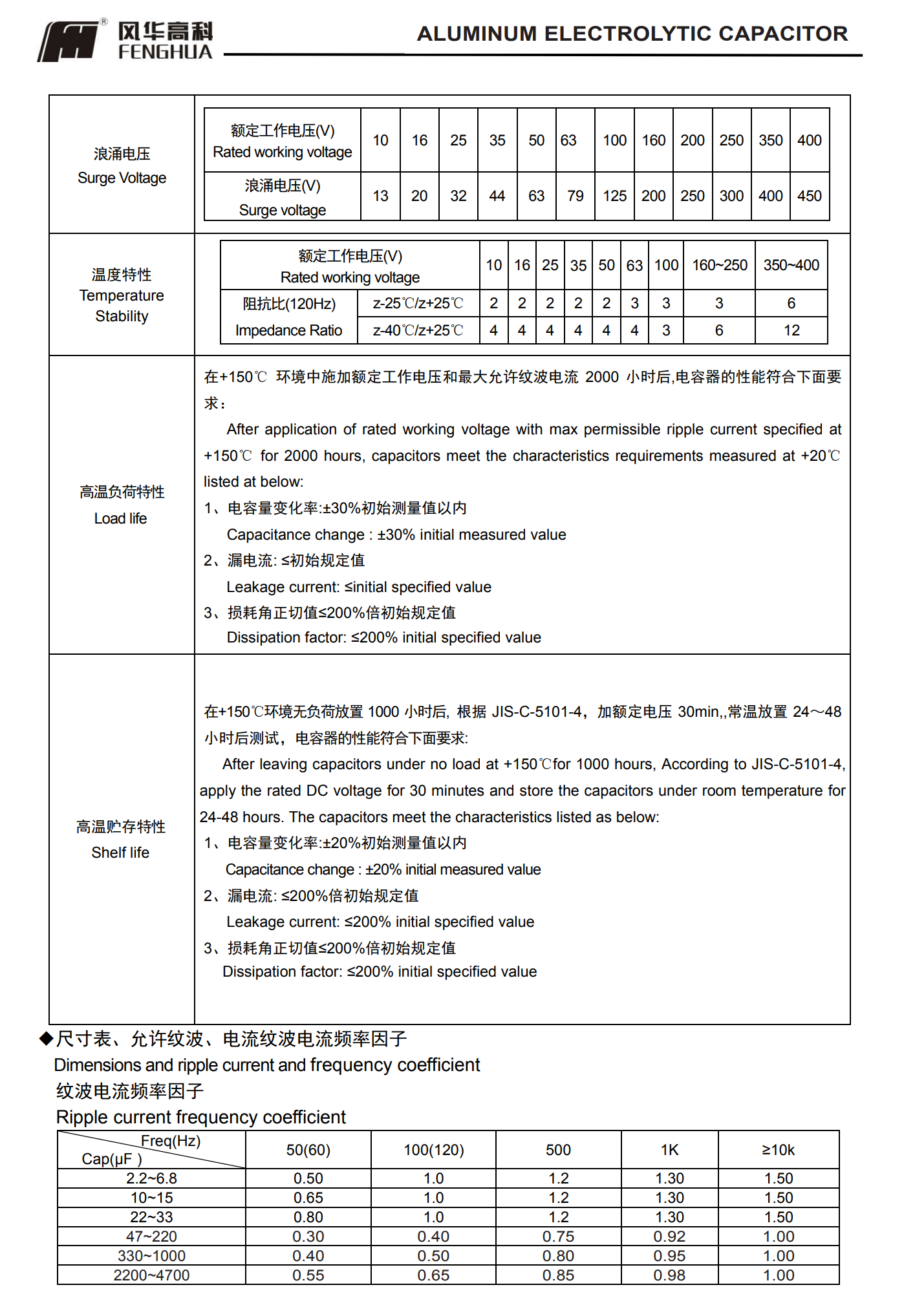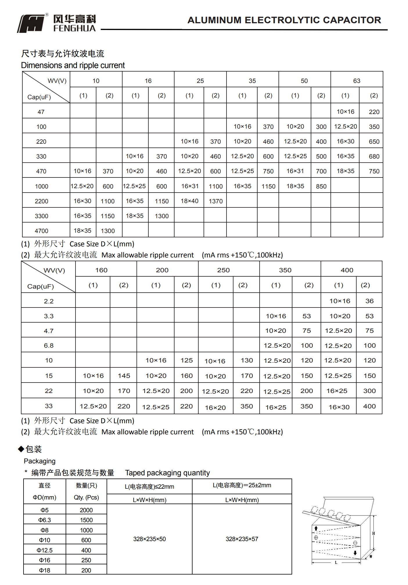■RW系列150℃標準引線型電解電容器