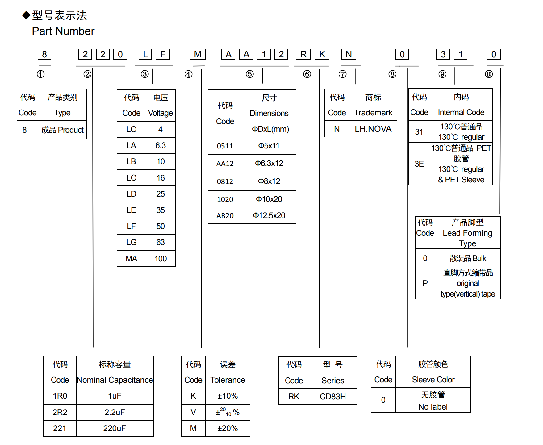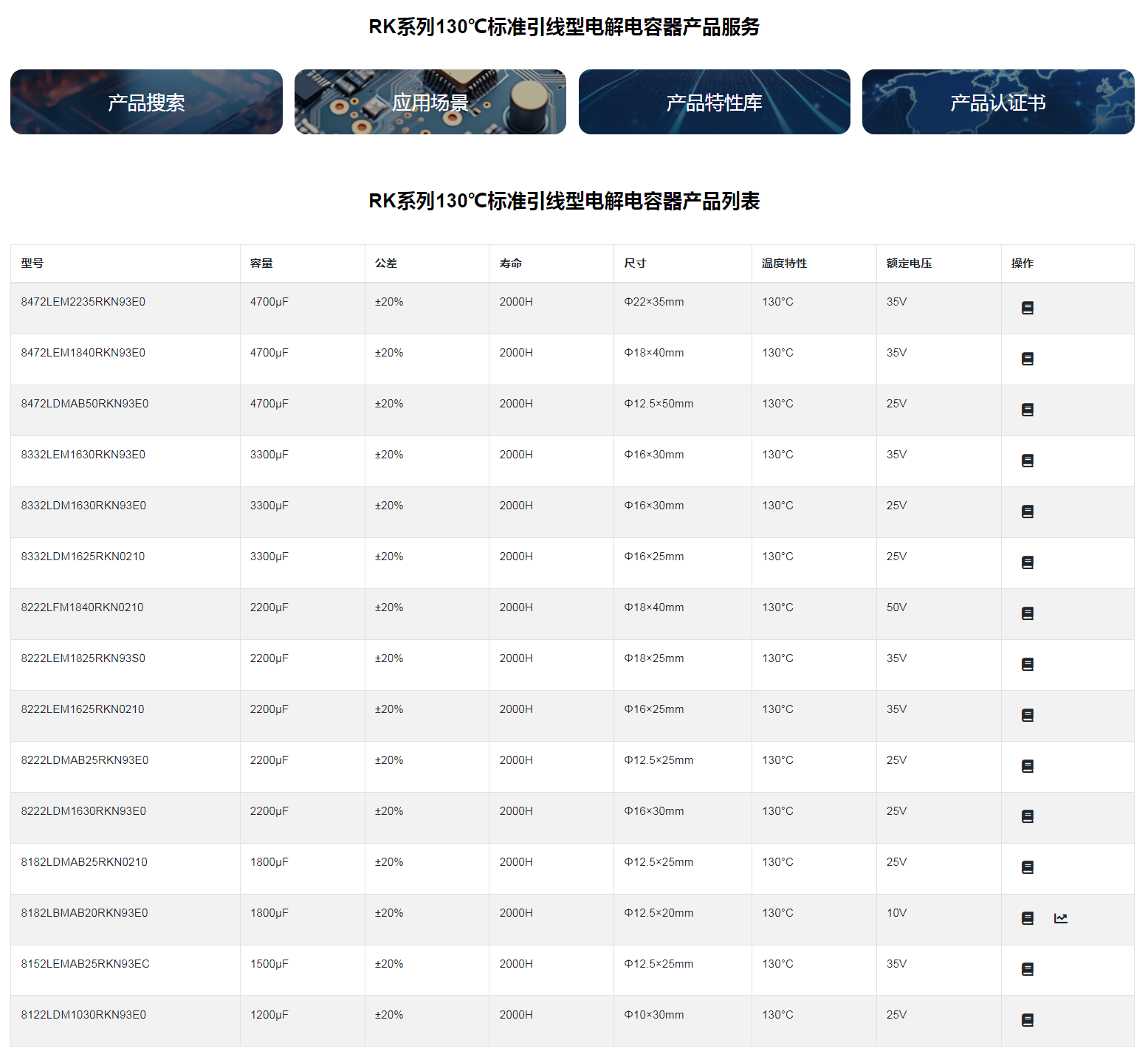 ■RK系列130℃標準引線型電解電容器◆特征* 壽命: 130℃ 2000 小時* 耐高溫* 符合 RoHS◆應用:*適用于汽車電子 、各類開關電源、LED 照明產品 、 LED 驅動器等電子產品