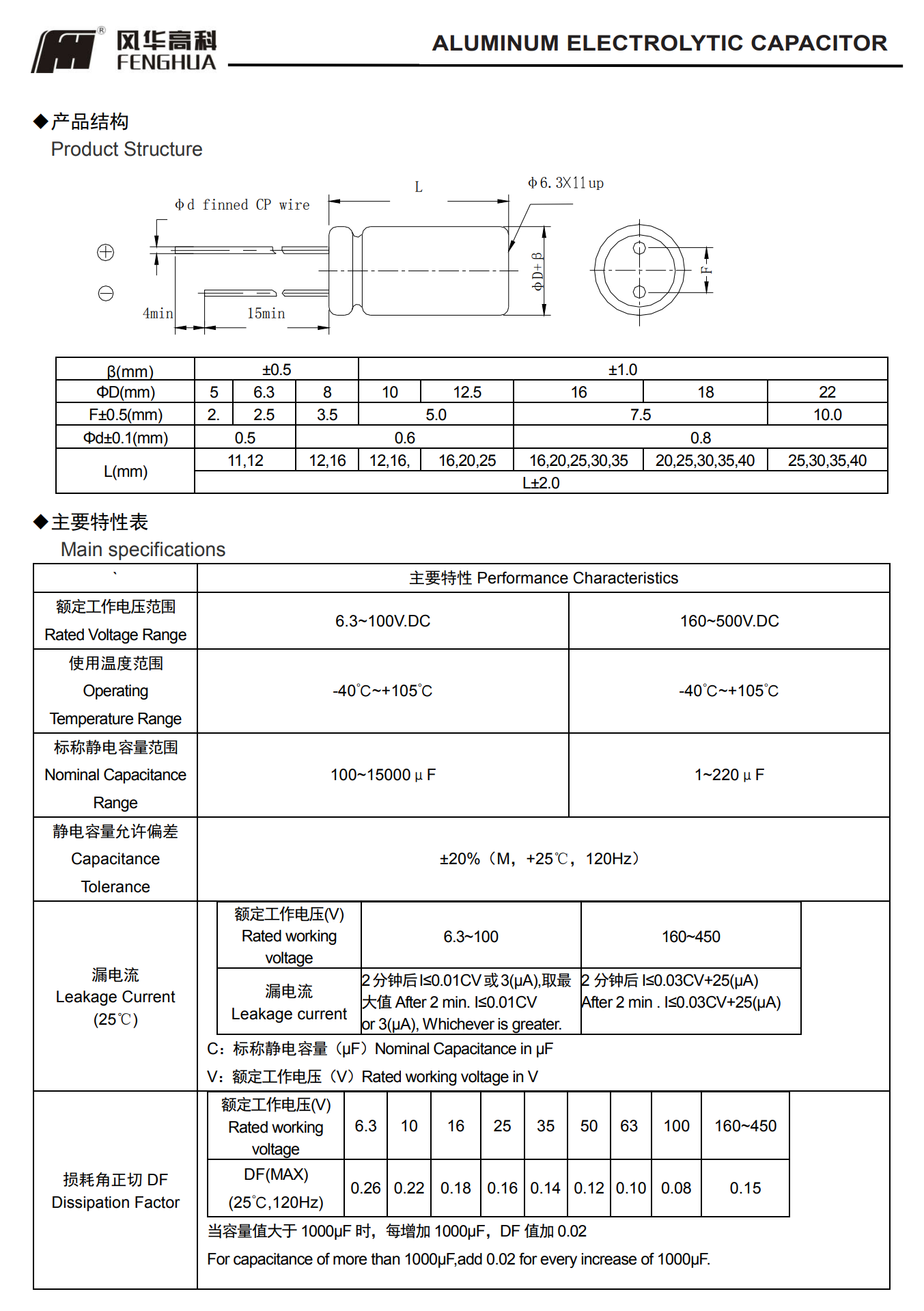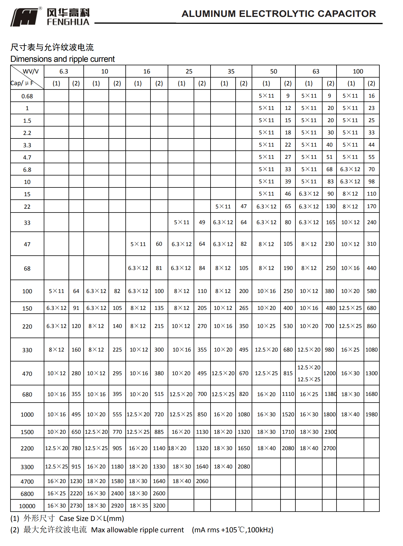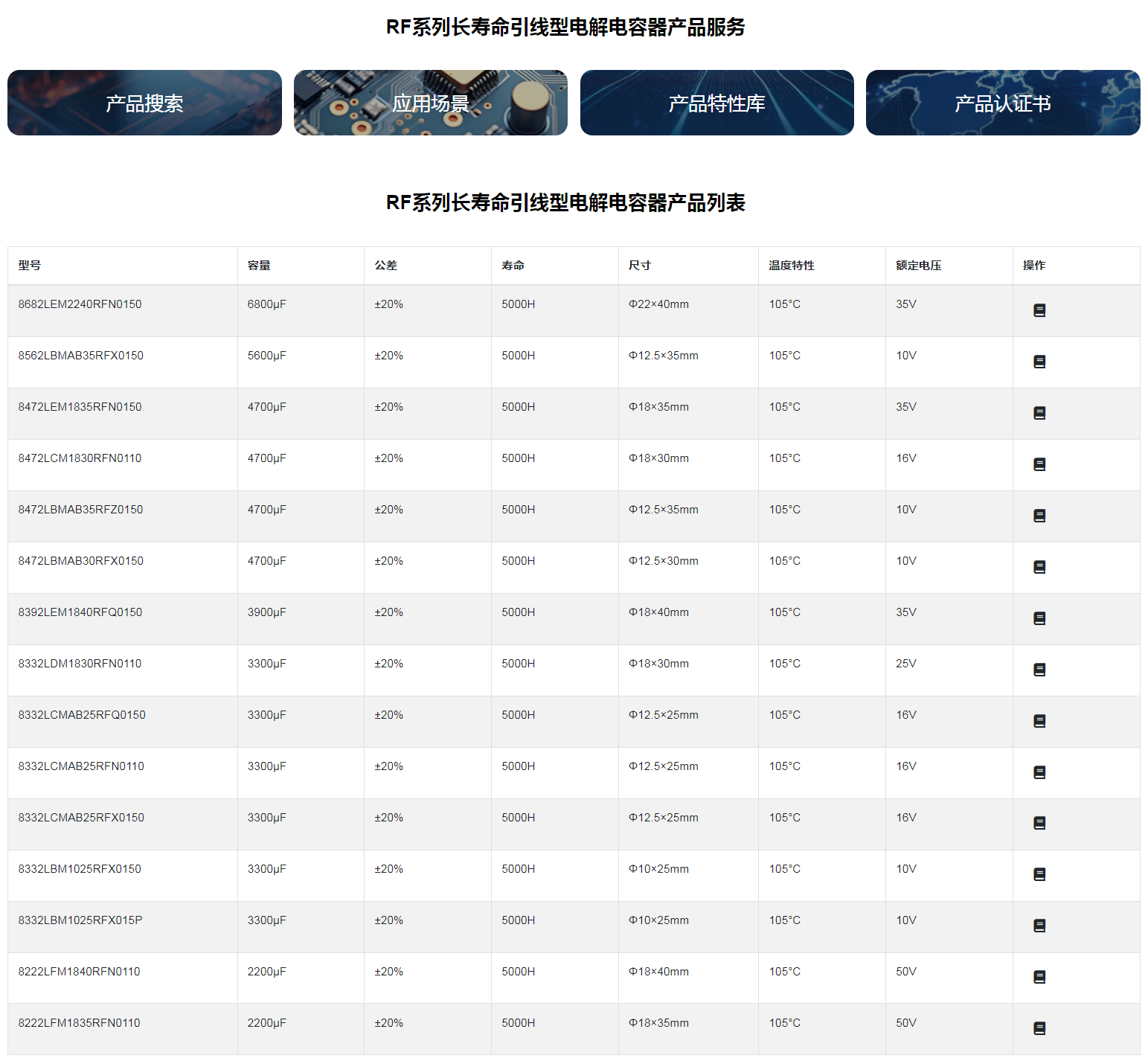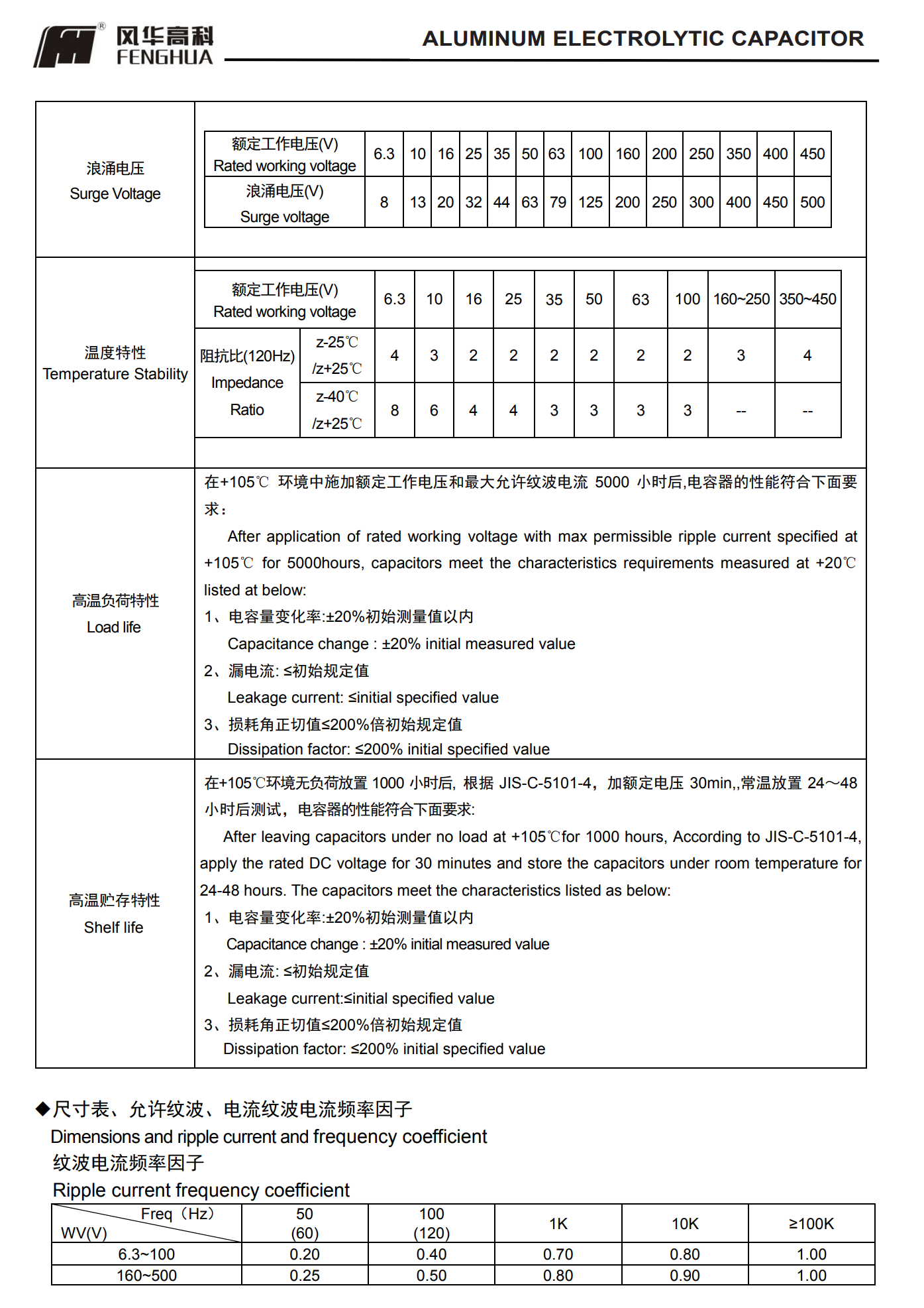 ■ RF 系列鋁電解電容器◆ 特征* 壽命: 105℃ 5000 小時* 長壽命* 符合 RoHS◆應用* 適用于各類開關電源、LED驅動器等電子產品