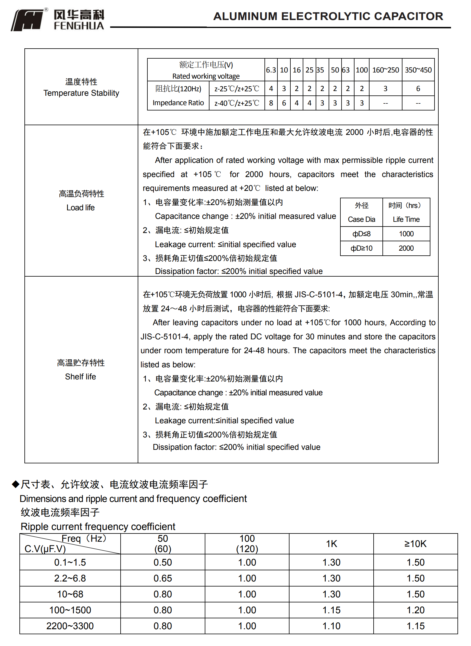 * 壽命: 105℃ 2000 小時