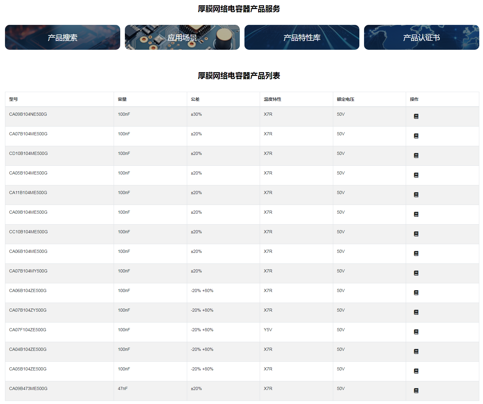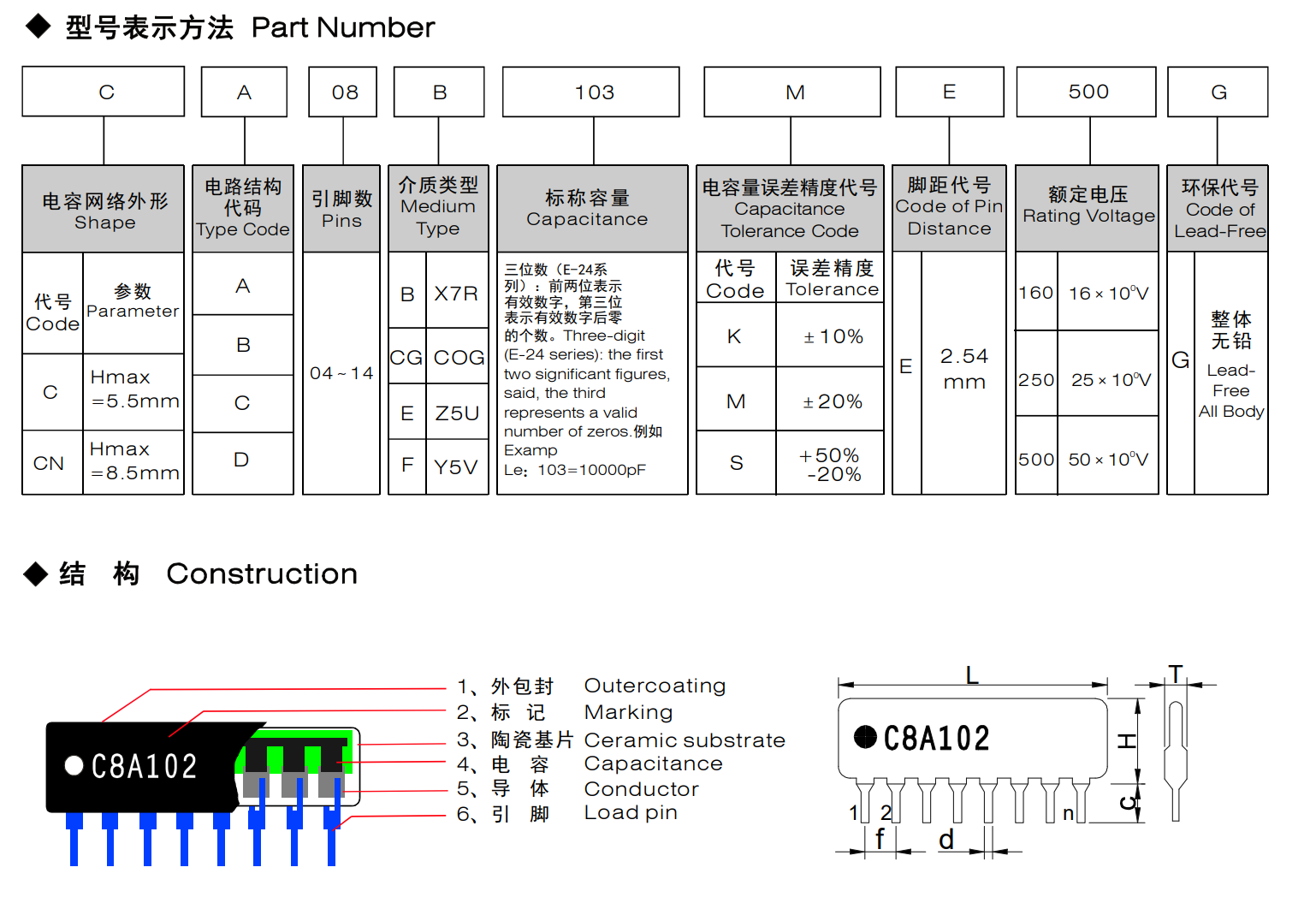 厚膜網絡電容器特點:1、按工業標準尺寸生產,小型化,組裝密度高2、可靠性高,使用壽命長,防潮性、抗腐蝕性好3、設計靈活,可根據用戶要求生產應用領域:應用于空調機、傳真機及通訊類產品。