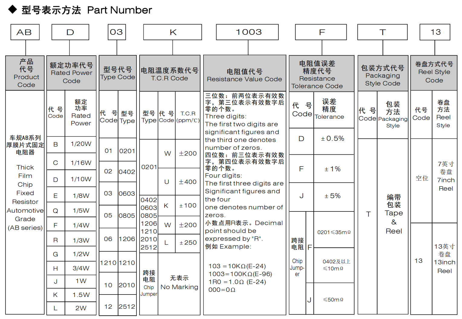 車規AB系列厚膜片式固定電阻器符合AEC-Q200汽車標準相關條款體積小、重量輕適應再流焊與波峰焊電性能穩定,可靠性高裝配成本低,并與自動貼裝設備匹配機械強度高、高頻特性優越具有一定的抗硫化能力符合RoHS指令要求符合無鹵素要求應用領域:汽車信息系統、車載導航系統、