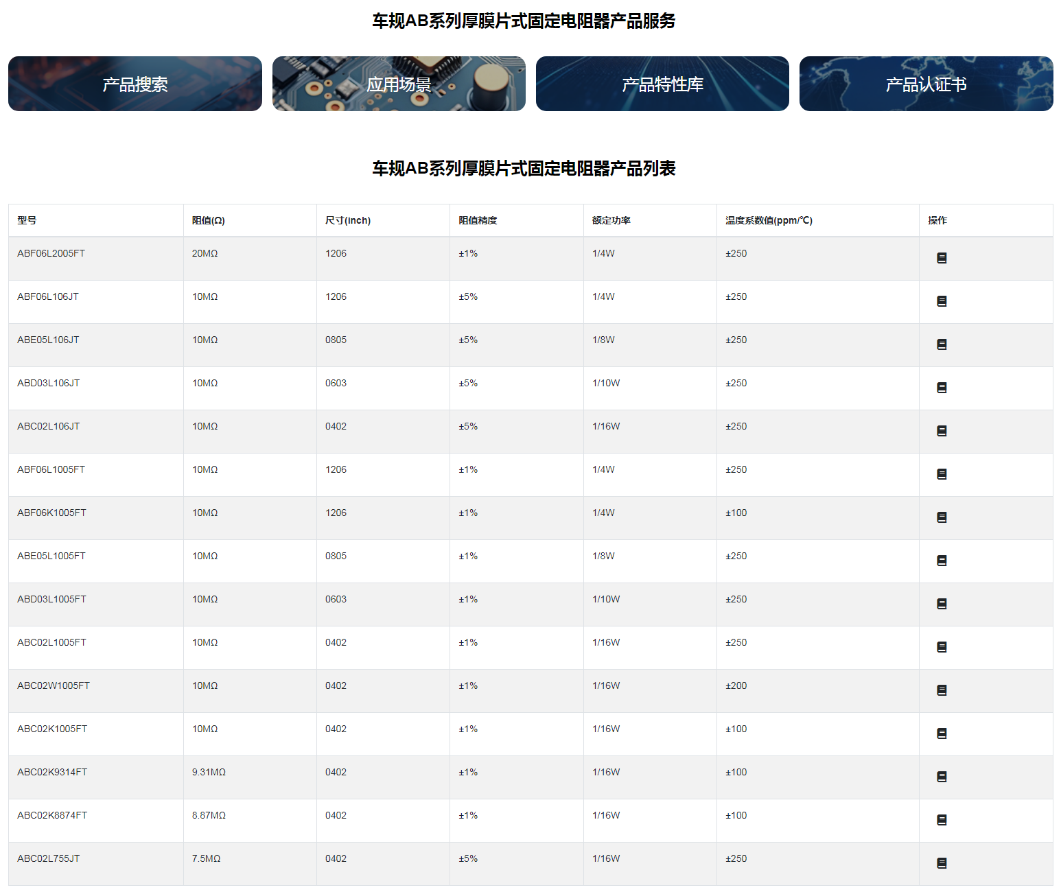 車規AB系列厚膜片式固定電阻器