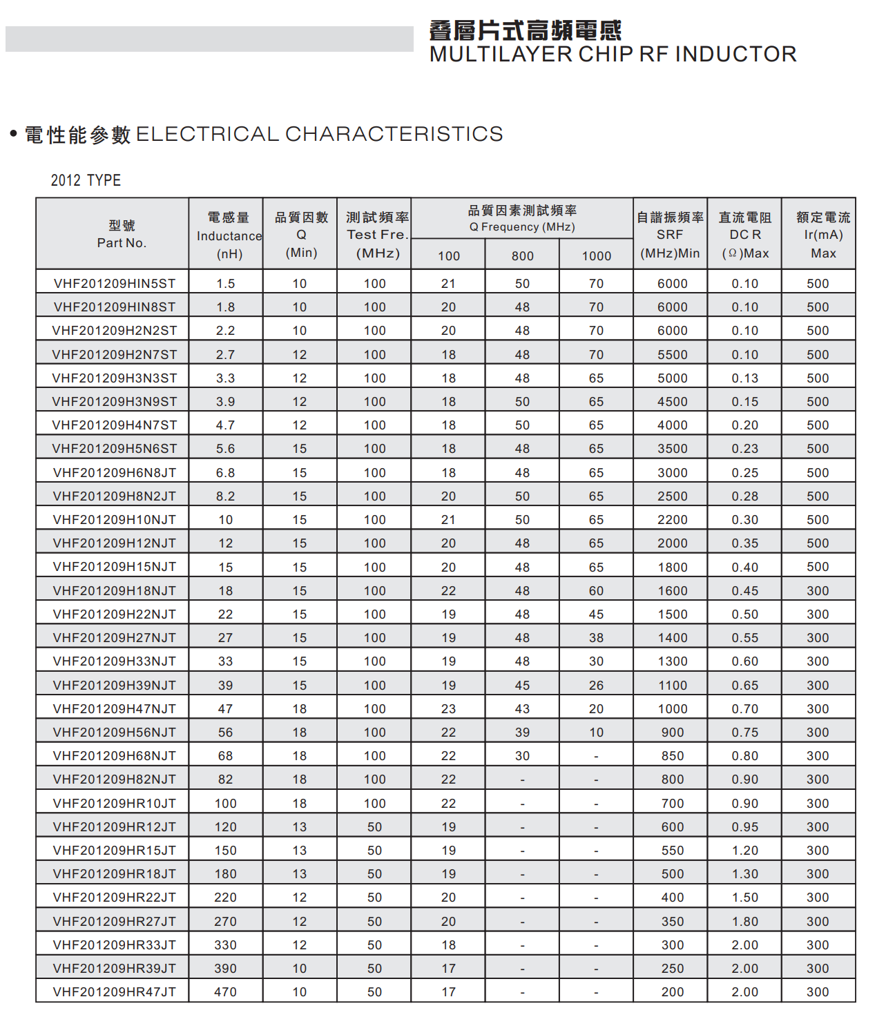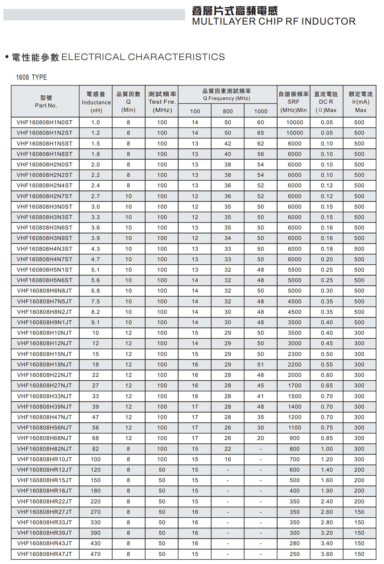 疊層片式高頻電感器具有高自諧振頻率的電感器,疊層獨石結構,具有高可靠性,用于高頻電路,移動電話、對講機、PHS和PDA,包括手機射頻模塊,Wi-Fi模塊,藍牙模塊和各種類型的匹配電路。