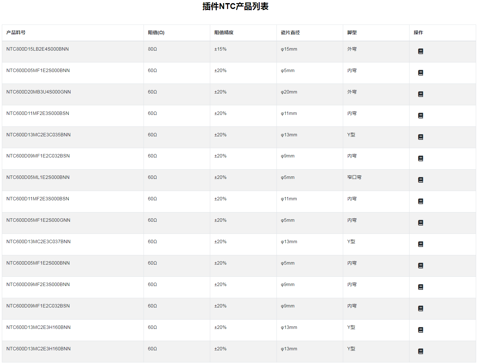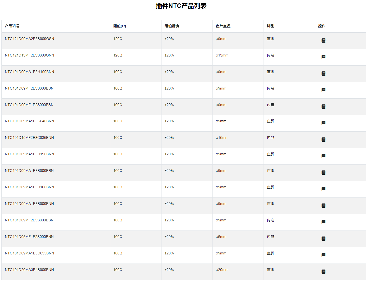 插件NTC熱敏電阻特性:功率大:抑制浪涌電流能力強(qiáng):B值大,殘余電阻小:適用于開(kāi)關(guān)電源、通信設(shè)備及其它各種電子產(chǎn)品
